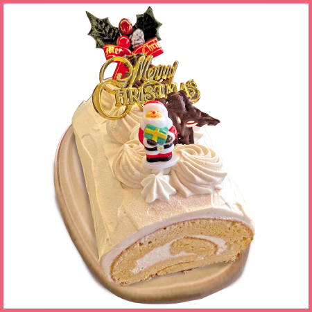 ふわふわのシフォンケーキの生地でチョコクリームを巻いたクリスマス仕様のロールケーキです。