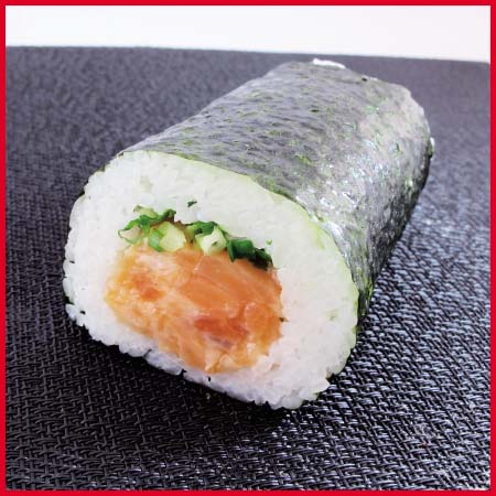 アトランティックサーモン・サーモントラウト・銀鮭の3種のサーモンで巻き上げた1品です。