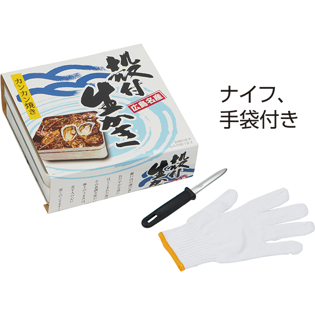 殻付かき(加熱用)×10、ナイフ、手袋付き