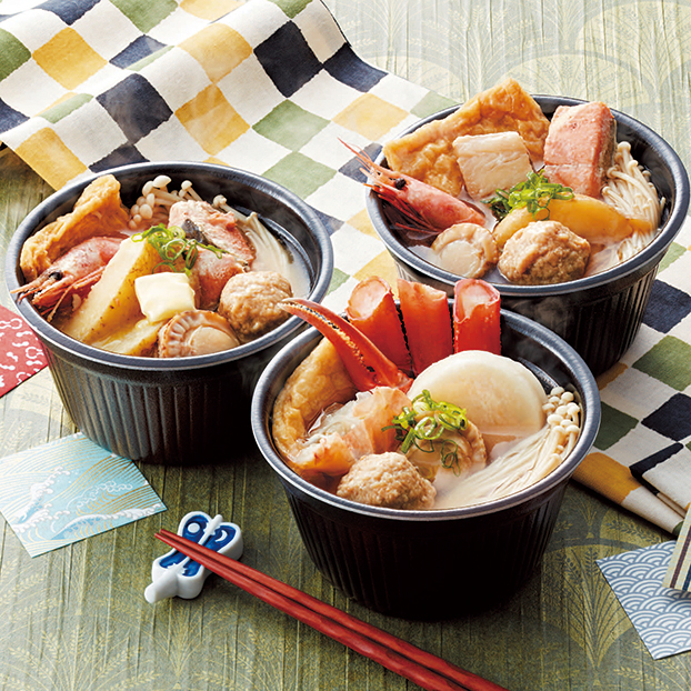 元大相撲力士、舞の海が監修した電子レンジで温めるだけで手軽に食べられる一人前用の小鍋セットです。