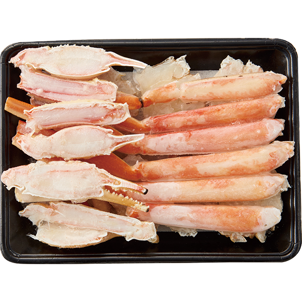 食べやすいように脚は殻を半分剥いています。解凍してそのままお召し上がりいただいたり、焼き蟹に最適です。