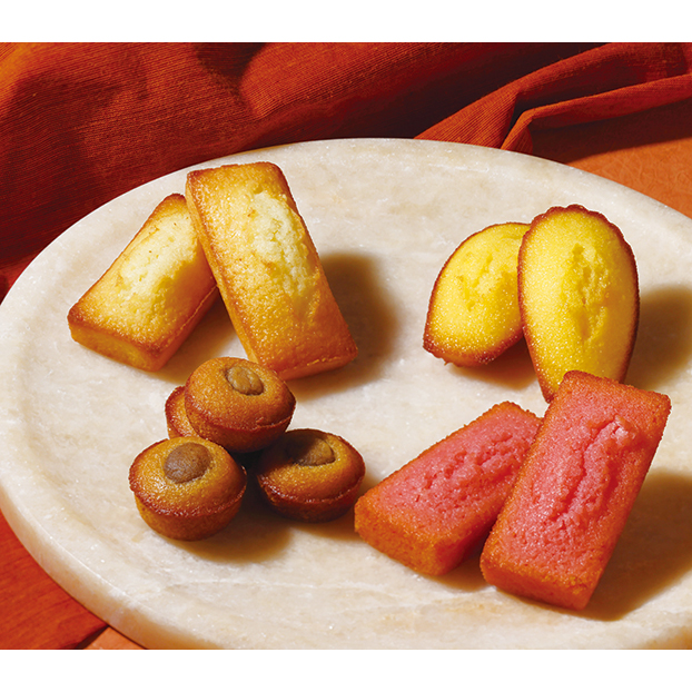 フィナンシェ×6、マドレーヌ×6、神戸二郎いちごフィナンシェ×6、兵庫丹波産栗おどるマロンケーキ×15