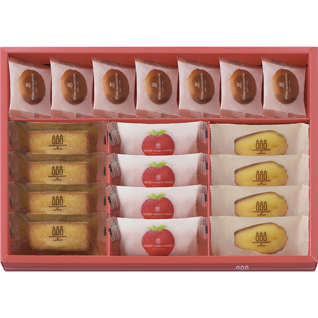 フィナンシェ×4、マドレーヌ×4、神戸二郎いちごフィナンシェ×4、兵庫丹波産栗おどるマロンケーキ×7