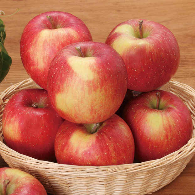 収穫直前まで葉をとらずに美味しさを補充させた「葉とらずりんご」。表面に残る葉の影こそ、りんご本来の美味しさのシンボルと言えます。