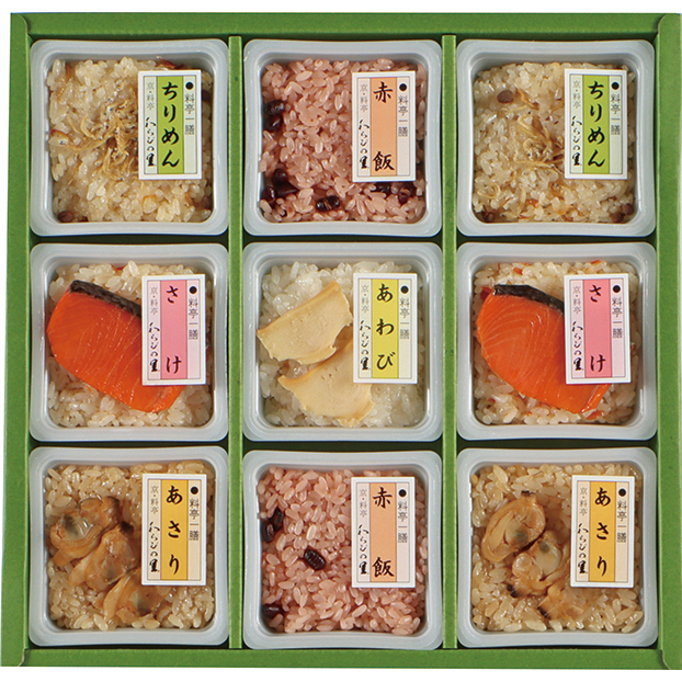鮭ごはん・ちりめんごはん・あさりごはん・赤飯各90g×各2、あわびごはん90g×1