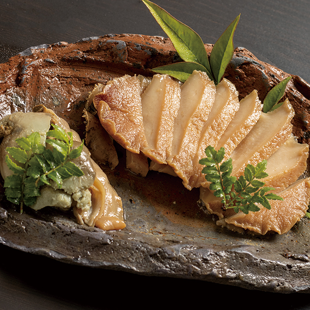 鮮度抜群のあわびをかいや独自の製法で姿のまま、じっくりとやわらかく煮上げました。