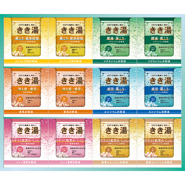 入浴剤30g(マグネシウム炭酸湯・カリウム芒硝炭酸湯・クレイ重曹炭酸湯・食塩炭酸湯・重曹カルシウム炭酸湯・カルシウム炭酸湯)×各4