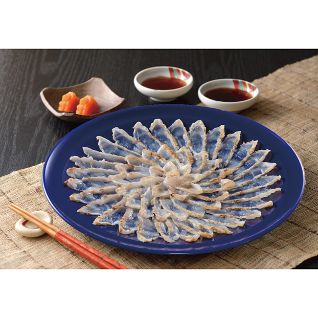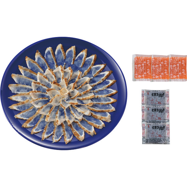 とらふぐたたき刺身(27cm皿)100g、ふくポン酢10g×3、もみじおろし10g×3 トラフグ(長崎県産、熊本県産:養殖)