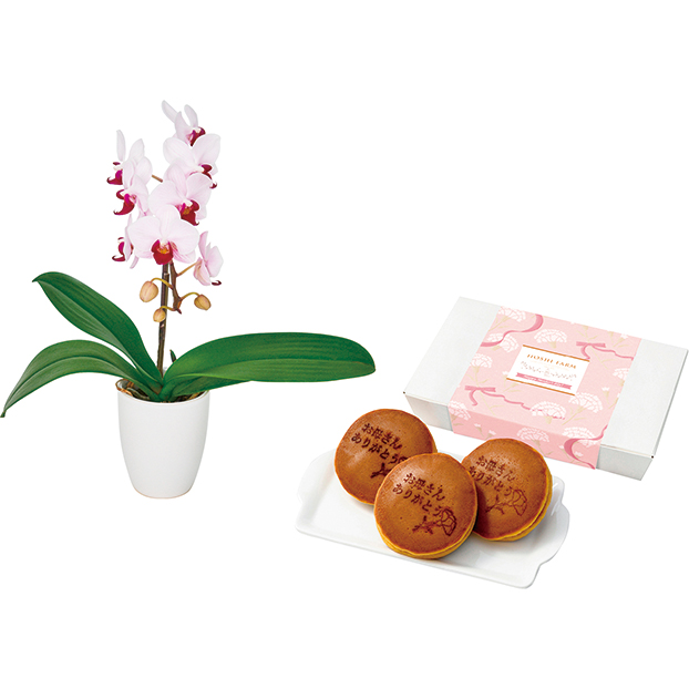 ホシファーム 「ありがとう」どら焼きとミディ胡蝶蘭